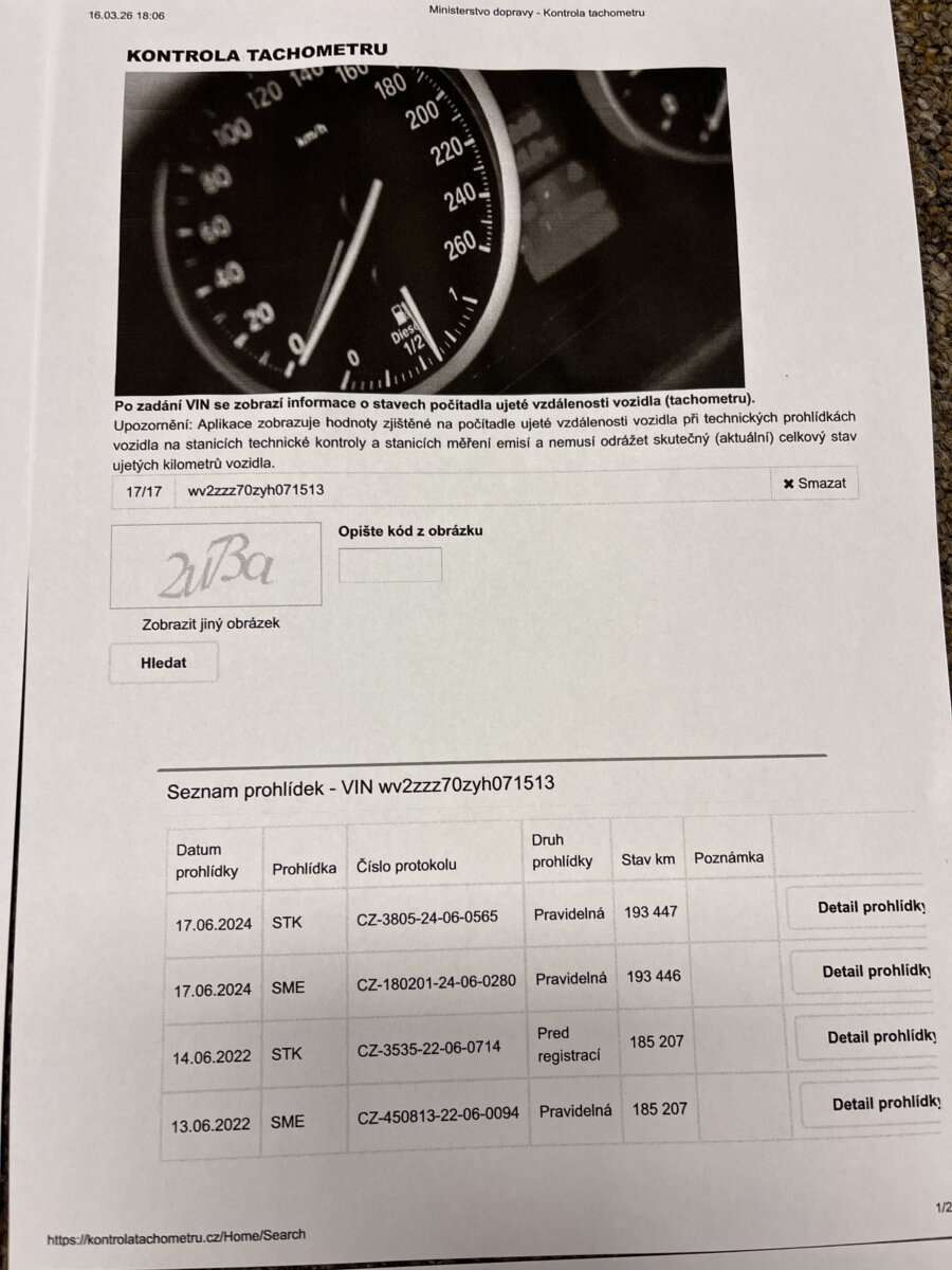 Doložitelná historie – podrobný výpis z Dánské STK + výpis z České STK.