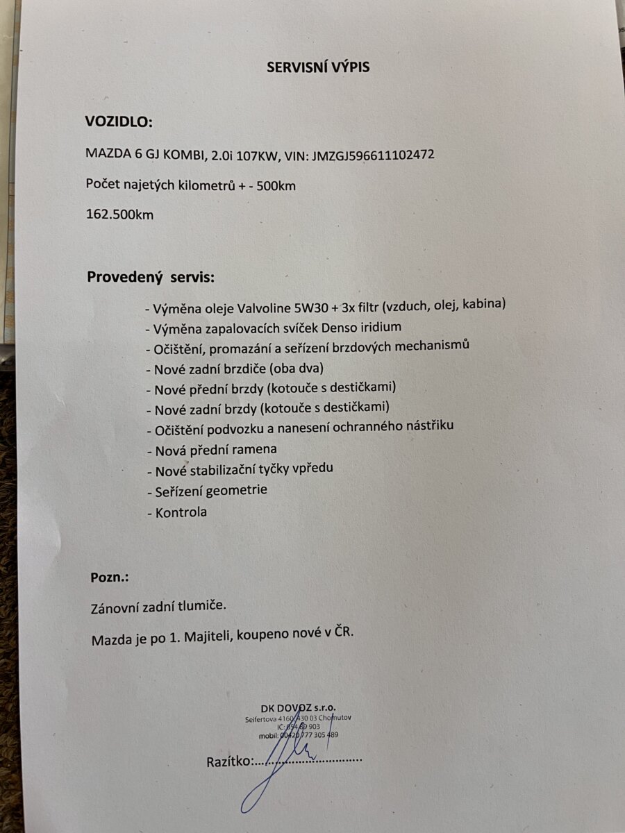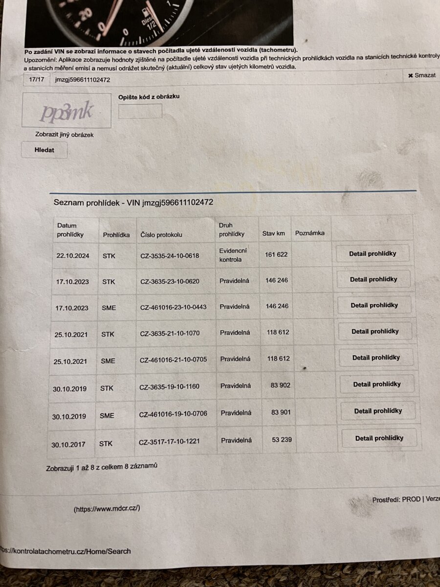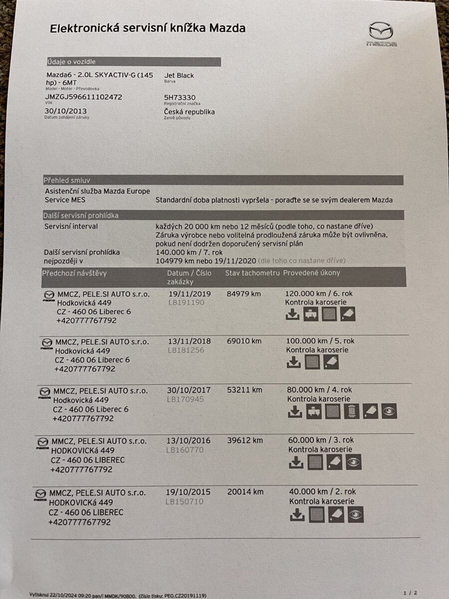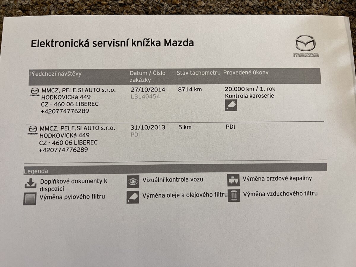Doložitelná historie – výpis servisní historie v Mazdě, protokoly z STK, Cebia.