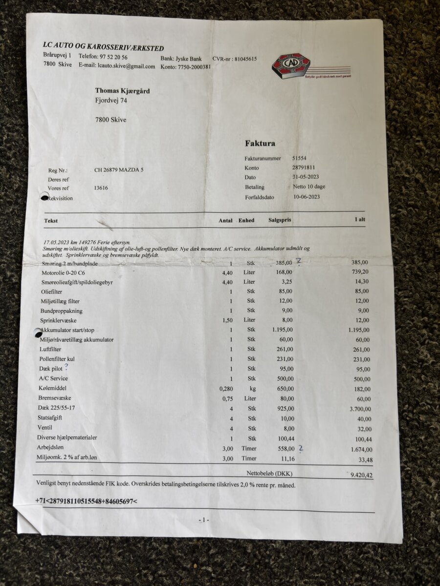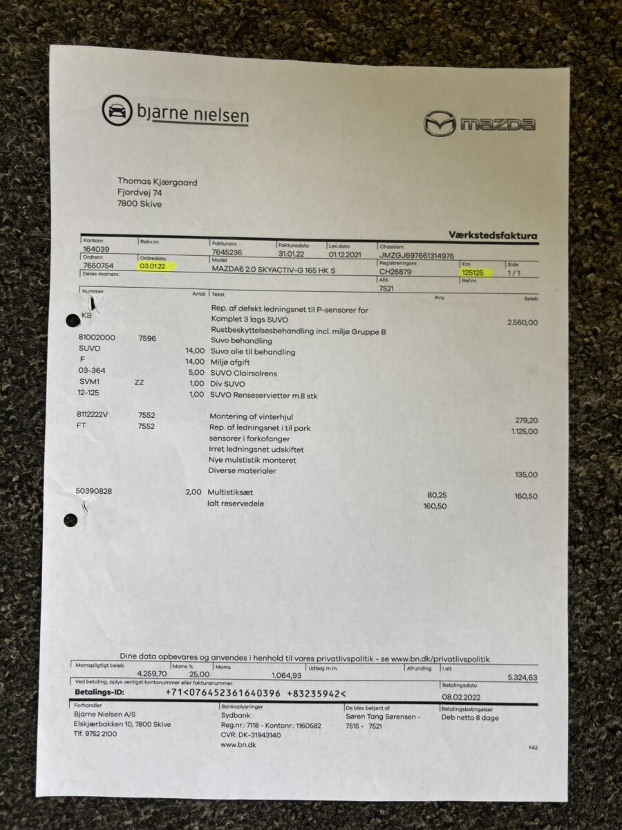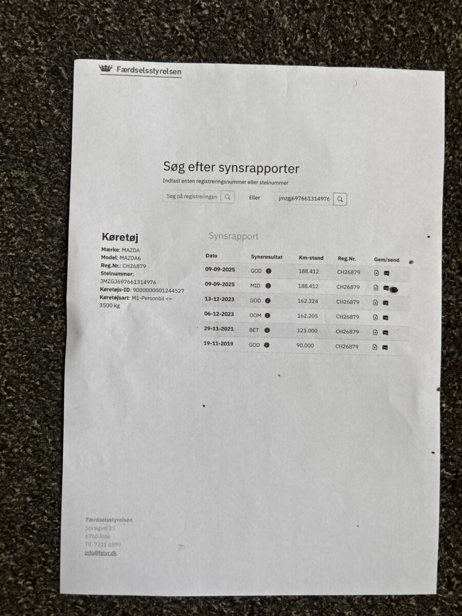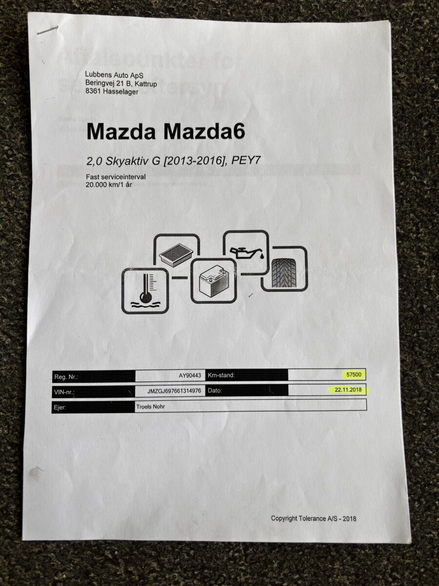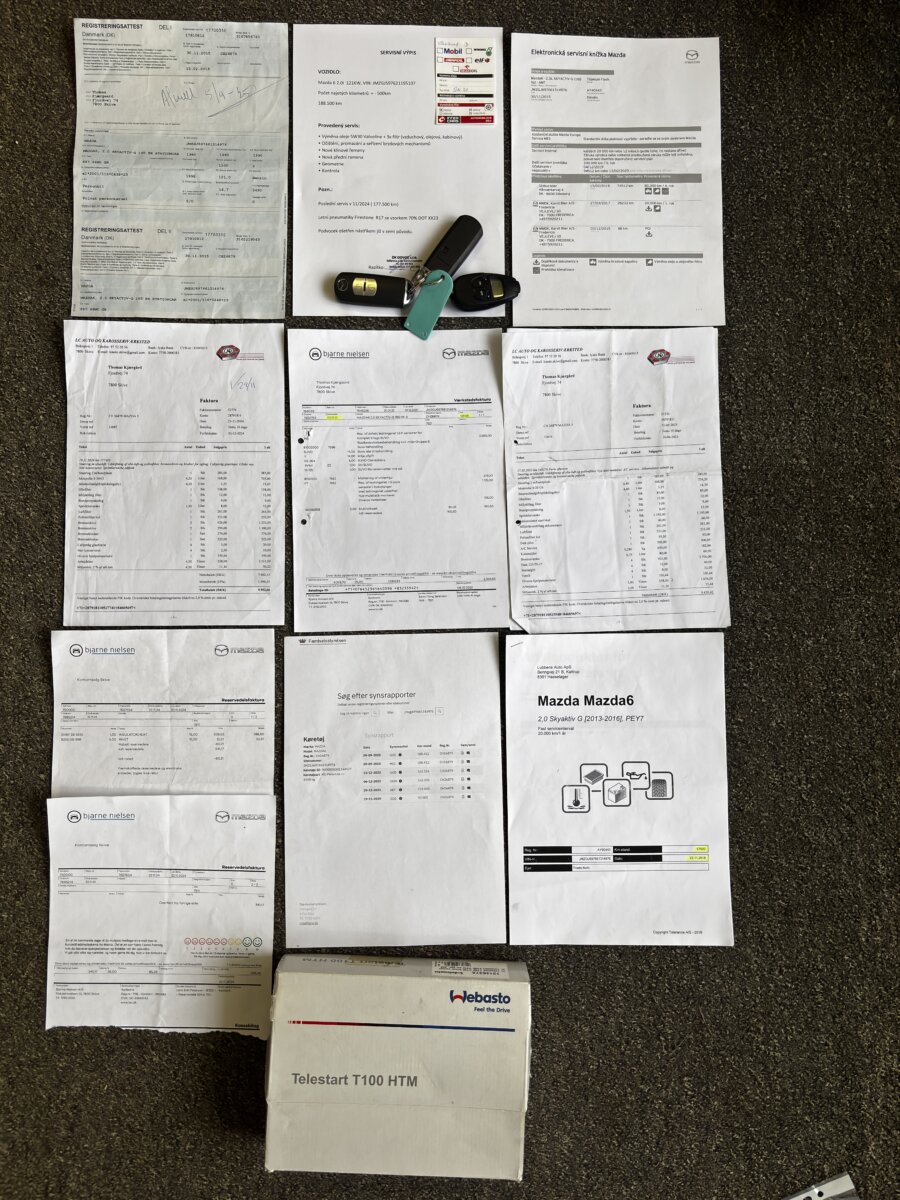Doložitelná historie – výpis ze servisní historie v Mazdě + faktury za servis + podrobný výpis z Dánské STK.
