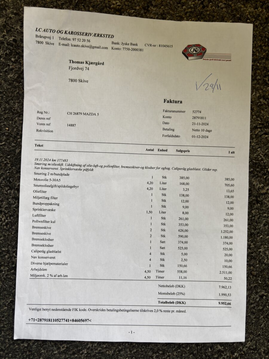 • Poslední servis v DK – 11/2024 ( 177.500 km) (Výměna P+Z brzdy – kotouče s destičkami)