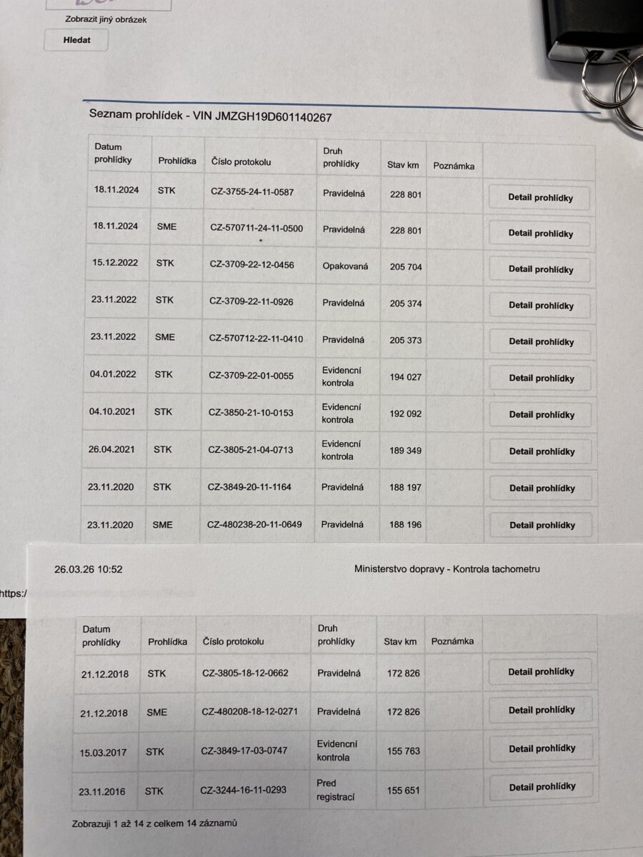 Doložitelný nájezd – servisní záznamy, záznamy z stk.