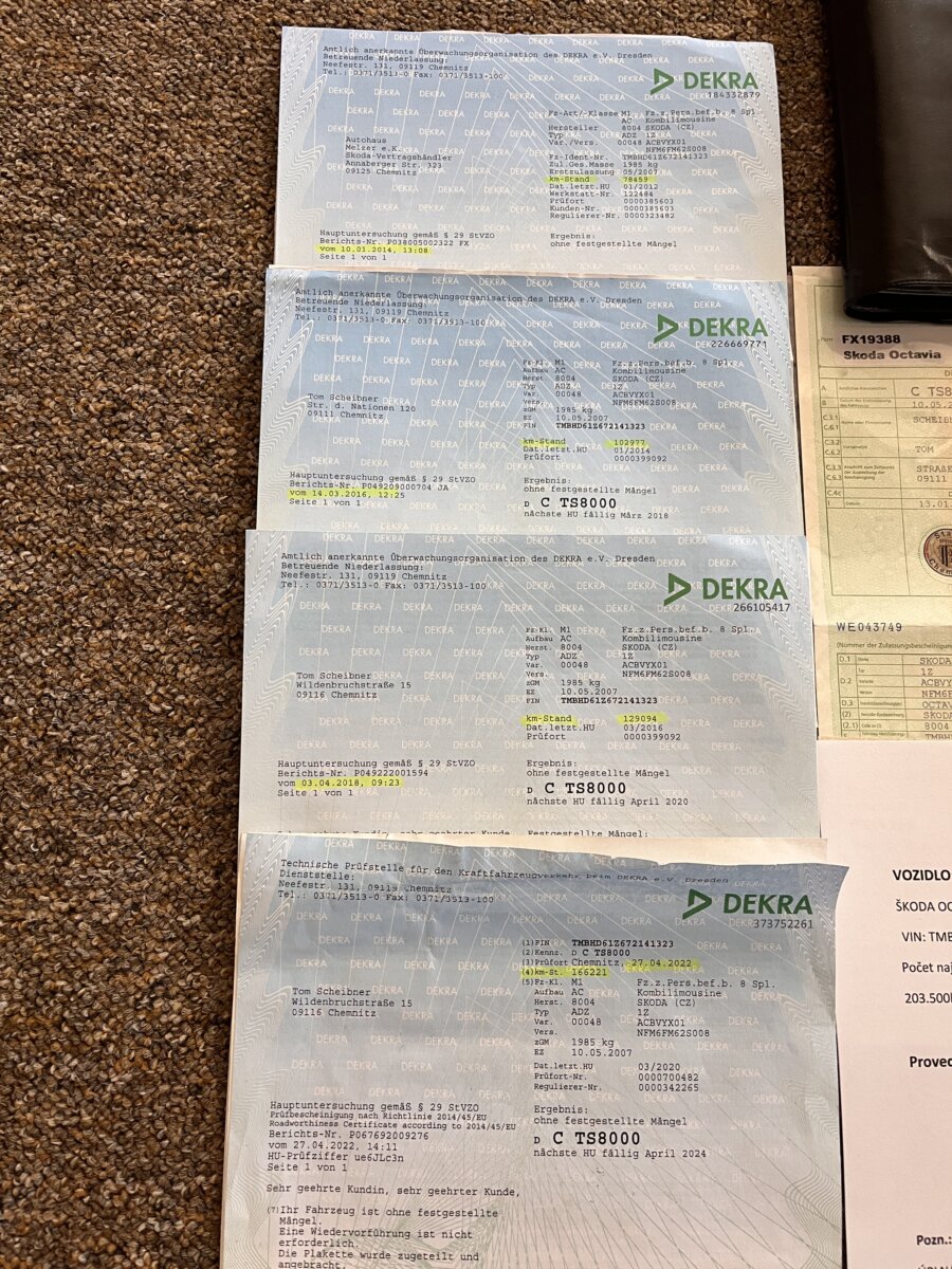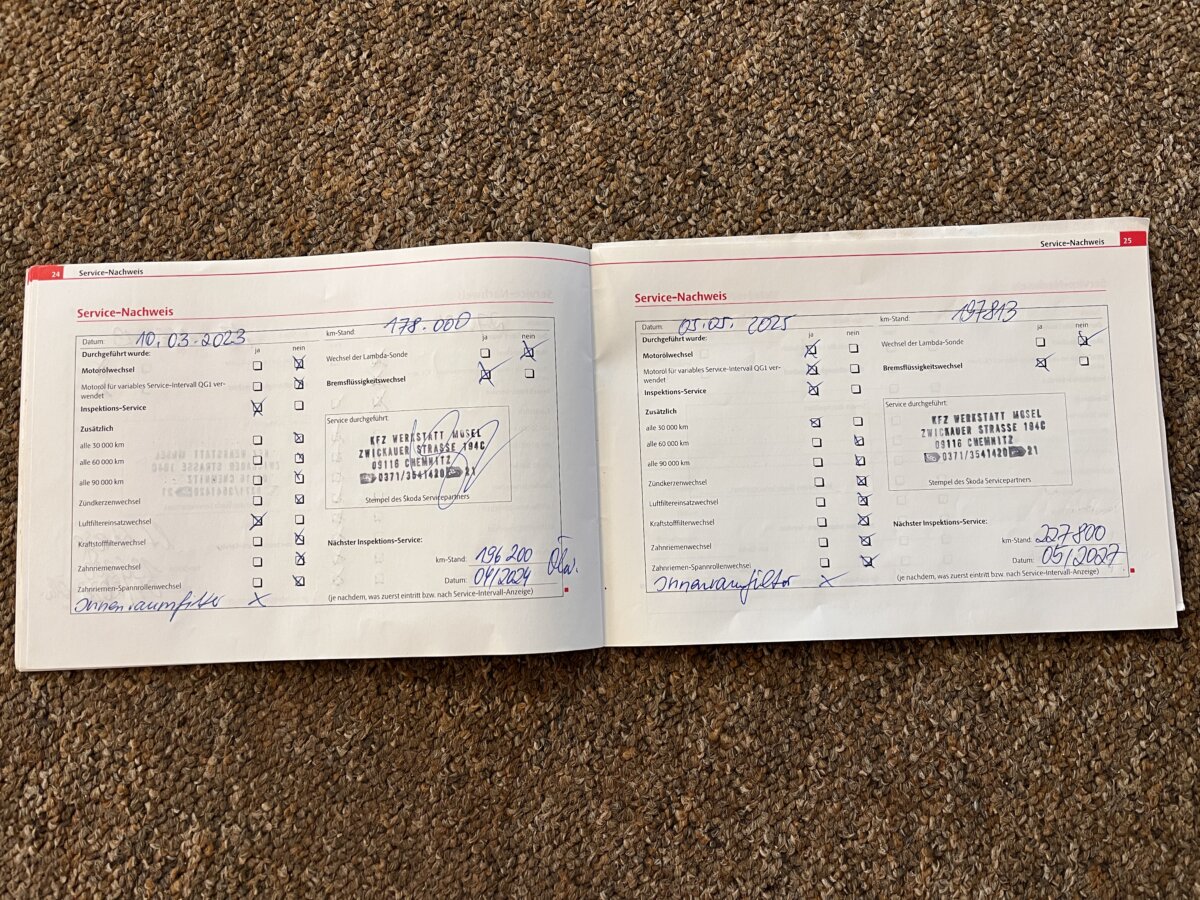 Doložitelná historie – Vyplněná servisní kniha + faktury + protokoly z Německé STK.