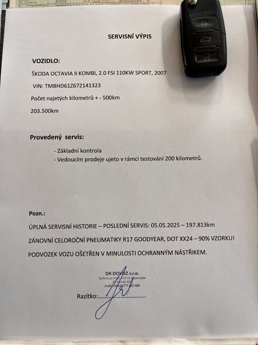 PRODÁM ŠKODU OCTAVIA 2 II, 2,0 FSI KOMBI / COMBI VE VÝBAVĚ SPORT!